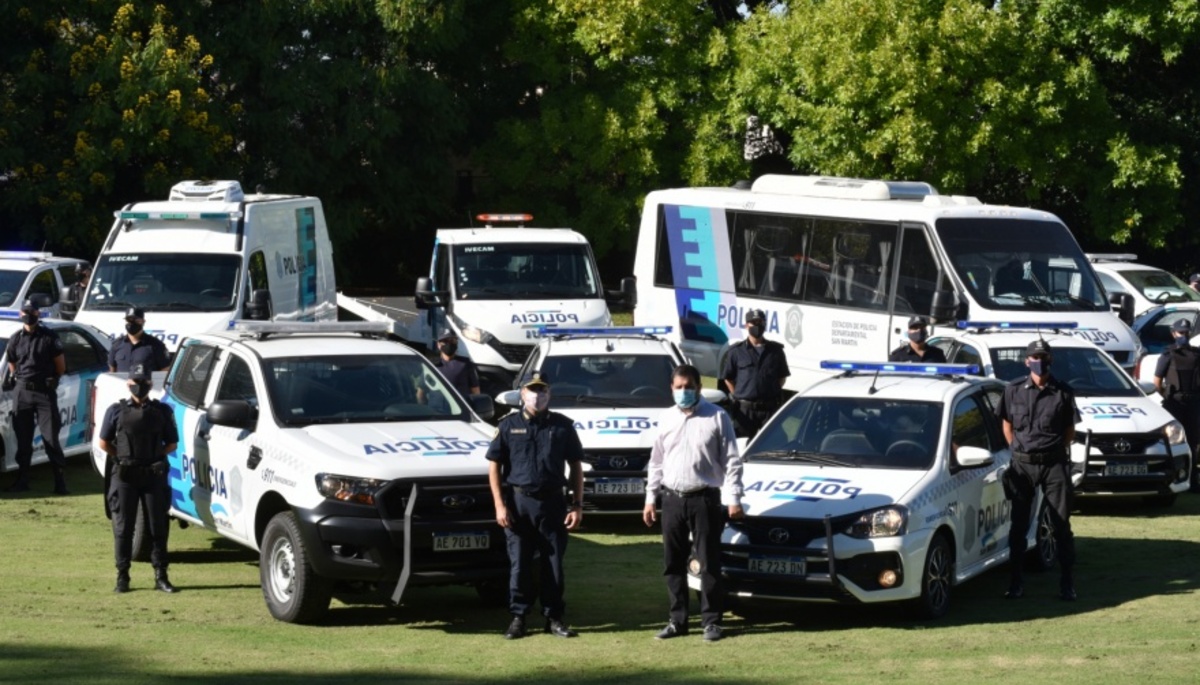 El intendente de San Martín, Fernando Moreira, presentó 30 patrulleros para la Policía de la Provincia y nuevo equipamiento, en el marco del Plan Nacional de Seguridad, articulado entre los gobiernos nacional, provincial y municipal.