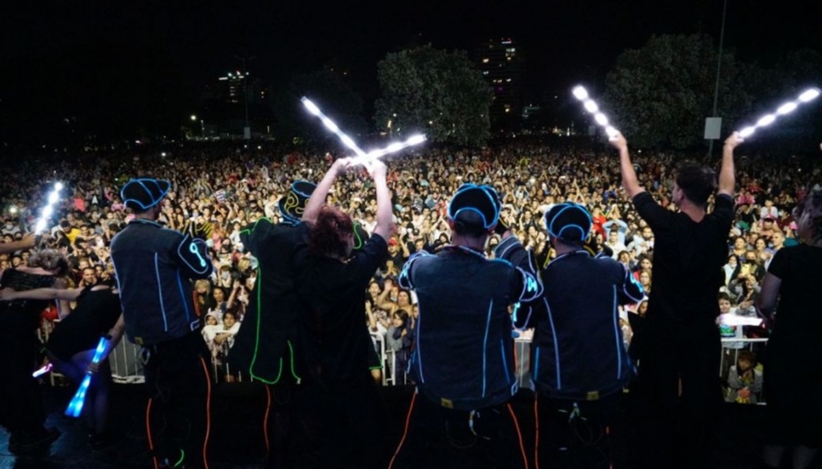 Para el gran cierre de la noche se realizó el show lumínico y musical, con 24 artistas realizando shows de malabares, acrobacias, poi luminosos (Barras con luces que forman logos al girar con velocidad), y coreografías con trajes luminosos que son secuenciados por un sistema inteligente.