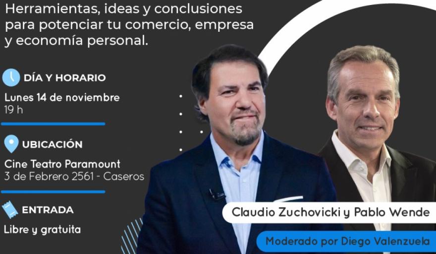 El evento contará con la presencia de los especialistas en economía Claudio Zuchovicki y Pablo Wende. Tendrá lugar el lunes 14 de noviembre a las 19 h en el Cine Teatro Paramount (3 de febrero 2561, Caseros), es gratuito y requiere inscripción previa con cupos limitados. Los interesados pueden reservar su lugar completando el siguiente formulario electrónico: forms.gle/gstHfKUVAYd3VBCr7. Para otorgarle una mirada integral a la problemática económica y social, el intendente de Tres de Febrero Diego Valenzuela será el anfitrión y moderador de la charla que brindará herramientas e ideas para todo tipo de negocios y la economía personal. “Este espacio es para que los vecinos, comerciantes e industriales vengan a compartir un espacio de intercambio y aprendizaje, ya sea para su negocio como para sus propios gastos”, destacó el jefe comunal. La conferencia tiene como objetivo brindar herramientas, intercambiar ideas y llegar a conclusiones que ayuden a potenciar proyectos y las finanzas personales. “Tenerlos acá es un honor para mí y también para todos los vecinos de Tres de Febrero y aledaños. Gracias por enriquecernos en un tema tan importante para todos los argentinos como es la economía”, detalló el mandatario bonaerense. Pablo Wende es trabaja en Telefé, tiene su programa radial en FM Milenium y escribe para Infobae, además de brindar charlas sobre economía para diferentes ámbitos empresariales y académicos. Por otra parte, Claudio Zuchovicki es Licenciado en Administración de Empresas y docente en distintas universidades del país. Además, brinda sus análisis y conclusiones sobre actualidad financiera para medios de comunicación como La Nación y TN.