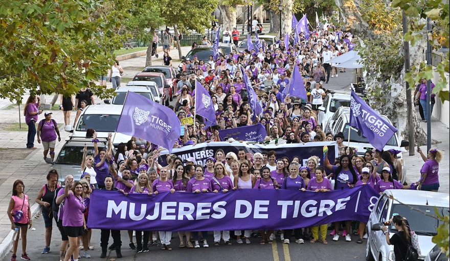 En el marco del Día Internacional de la Mujer, miles de vecinas marcharon desde la Plazoleta Hugo Del Carril hasta los jardines del Museo de Arte Tigre (MAT). La concejala Gisela Zamora y funcionarias locales participaron de la movilización que tuvo como objetivo reivindicar las luchas históricas y presentes de las mujeres. "Por tercer año consecutivo las mujeres de Tigre marchamos por nuestra ciudad, juntas y unidas de forma armoniosa. Agradezco a cada vecina que se acercó de distintos barrios y participó. Estamos viviendo un tiempo diferente para nosotras, logrando avanzar muchísimo en materia de derechos pero somos muy conscientes de que todavía falta mucho y por eso hoy nos manifestamos. Fue un día movilizante y nos invita a comprometernos para trabajar por el Municipio que queremos, libre de violencia, sin discriminación y más igualitario", sostuvo Gisela Zamora. Durante la tarde, las vecinas se concentraron en la Plazoleta Hugo Del Carril para movilizarse hasta los jardines del MAT por la Av. Intendente Ricardo José Ubieto, el Puente Arístedes Sacriste y el Paseo Victorica, con el propósito de visibilizar la lucha por la igualdad en todas las esferas sociales. Al finalizar la marcha, las presentes disfrutaron de la música en vivo de la Dj Lara Lagraña y de las Percusionistas Candomberas de Tigre. Luego, brindaron sus palabras la secretaria de Mujeres, Géneros e Infancias del Municipio, Nadia Olivieri y la concejala Gisela Zamora. La secretaria de Mujeres, Géneros e Infancias, Nadia Olivieri, expresó: "Estamos muy contentas porque es la tercera marcha que se realiza a nivel local y la convocatoria da cuenta de las necesidades de las mujeres de seguir luchando por una sociedad más igualitaria. Actualmente, tenemos una Secretaría de las Mujeres, Géneros e Infancias que fue creada por el intendente Julio Zamora y tratamos de trabajar de forma articulada, pudiendo transversalizar todas las políticas con el resto de las áreas del Municipio. Si bien es un hecho trágico el que nos convoca, la verdad es una alegría sentirnos unidas y partícipes de los cambios". El 8 de marzo fue establecido como el Día Internacional de la Mujer por la Organización de las Naciones Unidas (ONU) en conmemoración a las trabajadoras textiles de una fábrica de Nueva York que en 1911 se manifestaron para demandar mejores condiciones laborales y fueron asesinadas por la policía. Todos los años en esta fecha se busca reivindicar la lucha femenina para generar mejores condiciones de igualdad y avanzar hacia una comunidad más equitativa. Micaela, vecina de la localidad de Rincón de Milberg, dijo: "Me parece perfecto que el Municipio siga pensando en las mujeres. Vernos tan unidas como todos los años me encanta porque es una lucha que tenemos que ir construyendo de a poco para que de una vez el patriarcado vaya cayendo". Por otro lado, Mailén, vecina de la localidad de Troncos del Talar, mencionó: "Es un día para mí muy conmovedor porque la que me inculcó los derechos de las mujeres fue mi abuela y falleció hace poco. Sigo viniendo por ella y me parece importante el papel que cumplimos hoy. Este es uno de los pocos municipios que se preocupa y veo bastante acompañamiento, incentivando y haciendo campaña. Se ocupan de que estemos como ciudadanos interesados en nuestros propios derechos". En materia de políticas con perspectiva de género, el Municipio lleva adelante programas de atención integral para la mujer y disidencias sexuales como prevención y detección precoz de cáncer genito-mamario. Además, acompañamiento en la interrupción voluntaria y legal del embarazo, enmarcado en el Protocolo Provincial. También, se impulsan acciones de protección con la Comisaría de la Mujer y la Familia, una Subsecretaría de Fortalecimiento Familiar y 2 Juzgados de Familia en el Polo Judicial del distrito. La gestión local brinda asistencia a víctimas de violencia de género como Mujeres que Acompañan Mujeres y Mujeres Emprendedoras de Tigre. Asimismo, a través de Alerta Tigre-Género se ofrece el servicio de denunciar agresiones o reportar situaciones de riesgo mediante diferentes dispositivos o aplicaciones tecnológicas, como el Dispositivo de Alerta para Mujeres Agredidas (DAMA).