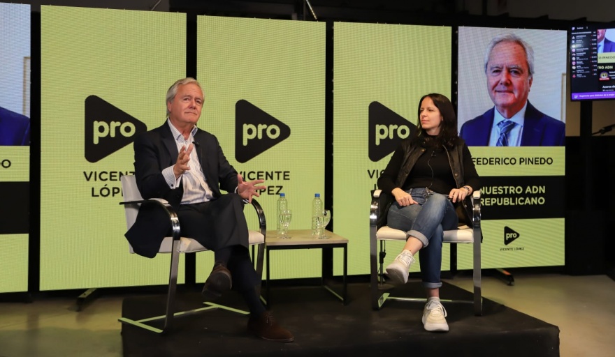 La intendenta de Vicente López, Soledad Martínez, y el ex presidente provisional del Senado, Federico Pinedo, compartieron una charla con vecinos y militantes del PRO en el barrio de la Lucila, donde plantearon la necesidad de un nuevo gobierno republicano y democrático para salir de la crisis y del estancamiento actual de la Argentina.