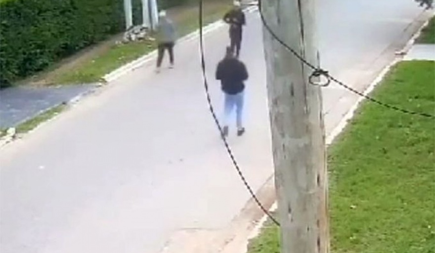 La secuencia quedó registrada por dos cámaras de seguridad privada en cuyas imágenes se observó como los dos delincuentes, uno vestido con un buzo negro, el otro de un color más claro y ambos con gorra, interceptan al policía amagando sacar un arma de fuego.