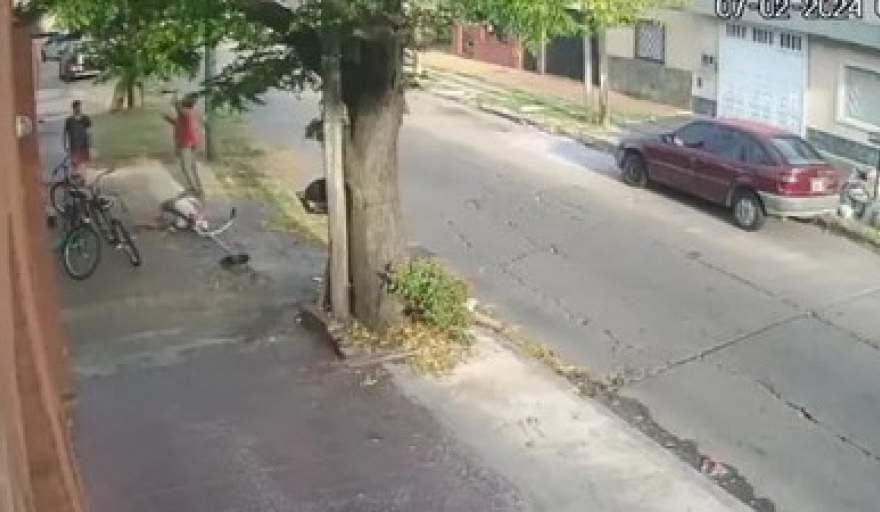 En imágenes captadas por una cámara de seguridad cercana se puede observar como la víctima recibe un disparo cuando estaba en la vereda cortando el pasto, instantes después de que cruzaran los ladrones con la camioneta robada a alta velocidad.
