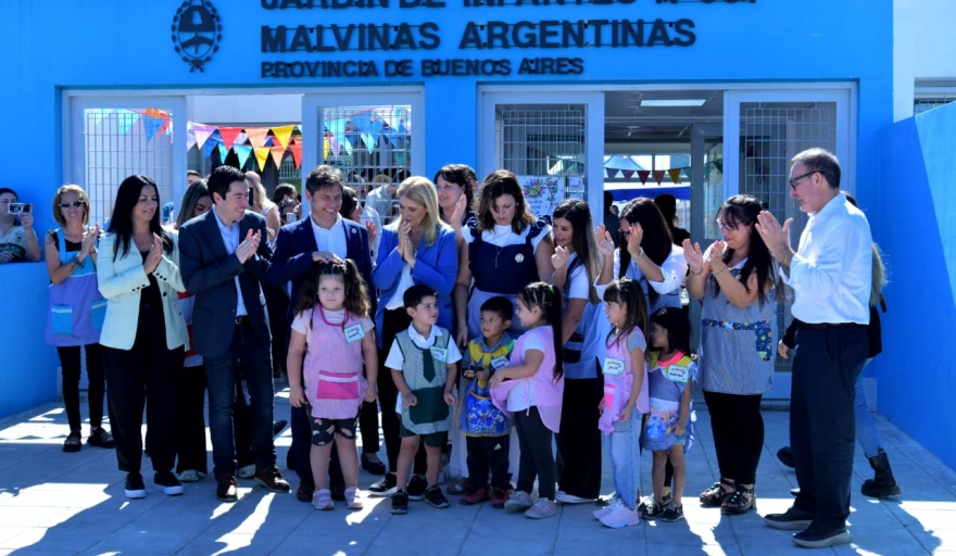 El intendente de Malvinas Argentinas, Leo Nardini, y el gobernador de la Provincia de Buenos Aires, Axel Kicillof, inauguraron el Jardín de Infantes Nº 931 de la ciudad de Villa de Mayo, junto a la vicegobernadora de la Provincia, Verónica Magario; el director de Cultura y Educación de la Provincia, Alberto Sileoni; el vicepresidente primero del Senado Bonaerense, Luis Vivona; la secretaria general del municipio, Noe Correa; la directora de la institución, Roxana Di Leo, entre otros.