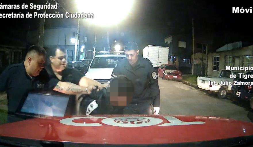 Todo comenzó cuando operadores del centro de monitoreo visualizaron al sujeto con actitud sospechosa en la intersección de José Hernández y Maestro Vicco. En las imágenes se ve que intenta abrir el automóvil estacionado en la vereda.