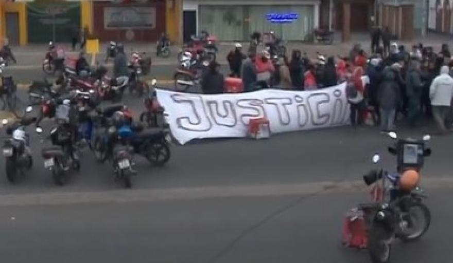 Los repartidores que protestan afirmaron que los móviles de la televisión expresaron que la protesta con corte de calle se da porque “es la única manera que nos escuchen. Nos mataron a un compañero”.