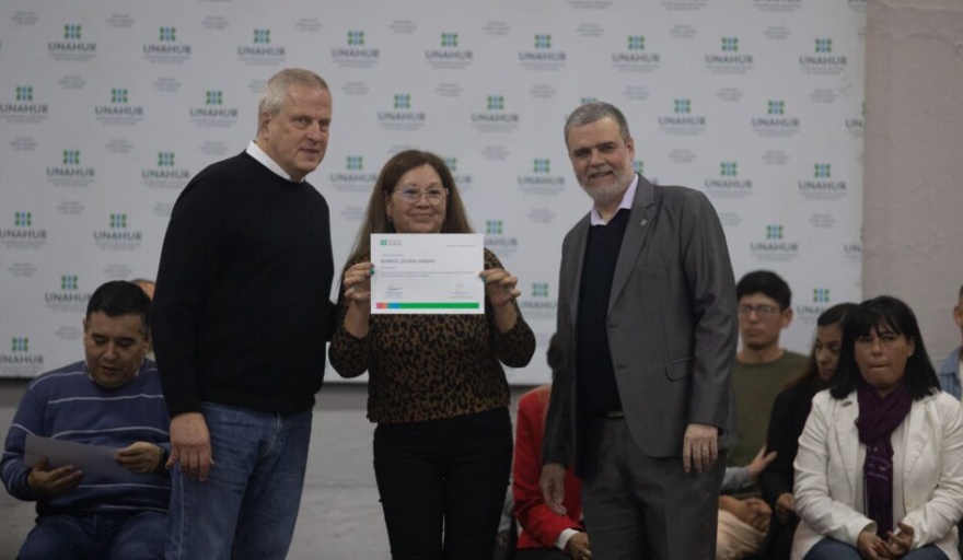 «Ustedes han conseguido con mucho esfuerzo y compromiso un logro muy importante en sus vidas. Eso es posible porque en esta universidad a parte de estudiar carreras de pregrado, grado y maestrías se puede cursar la escuela secundaria. Las y los felicitamos de corazón y deseamos que puedan continuar en la UNAHUR«, expresó Jaime Perczyk.