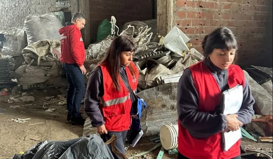 En Castelar, se inspeccionó un establecimiento el cual se encontraba cerrado, pero con evidentes signos de almacenamiento irregular de materiales reciclables, tales como cartones y bandejas de plástico.