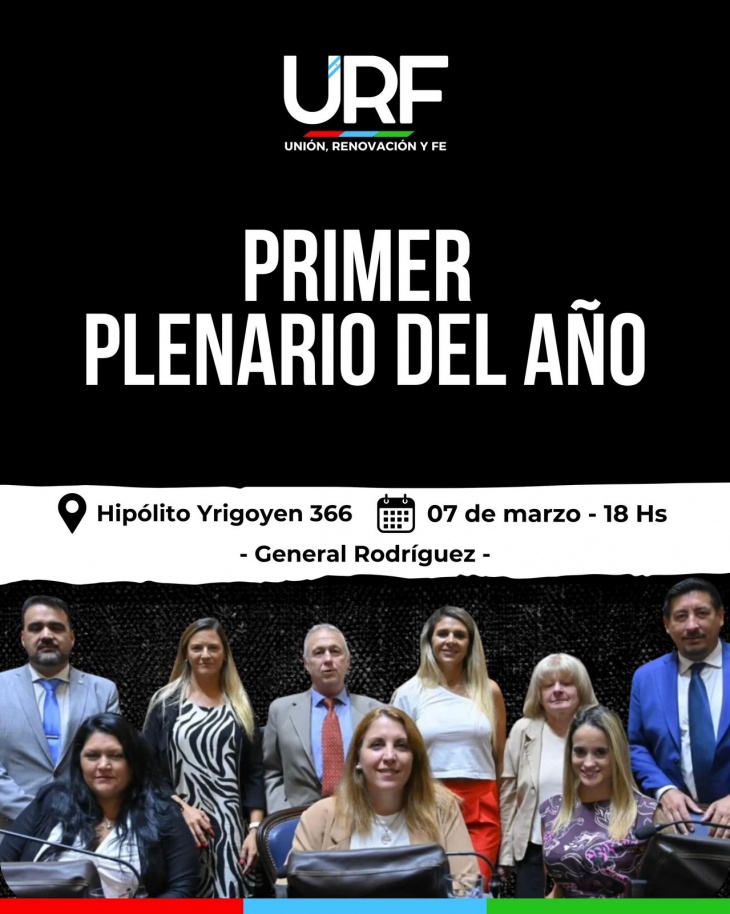 Desde URF Marcos Paz, se invita a participar al primer plenario de Unión, Renovación y Fe 2025, para organizar el camino de renovación que necesita la provincia de Buenos Aires y cada uno de sus distritos. Se realizara el 7 de marzo en General Rodríguez.