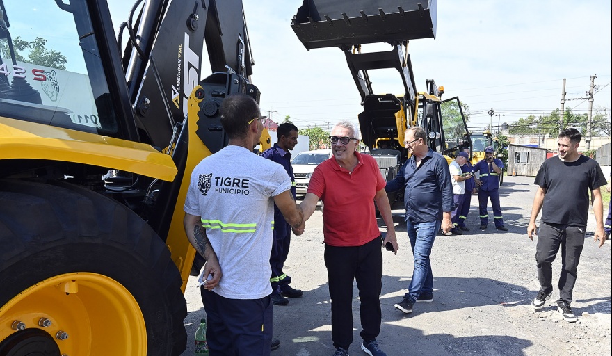 Con fondos propios, el Municipio de Tigre sumó nueva maquinaria para optimizar los servicios públicos, que incluyen: 8 palas cargadoras, 3 retroexcavadoras (una con martillo) y una minicargadora con martillo. El intendente Julio Zamora acompañó la puesta en funcionamiento de los equipos y conversó con los maquinistas, quienes participaron de una capacitación por parte de la empresa proveedora Americanvial, con el objetivo de conocer todas las funciones y garantizar su correcto mantenimiento.