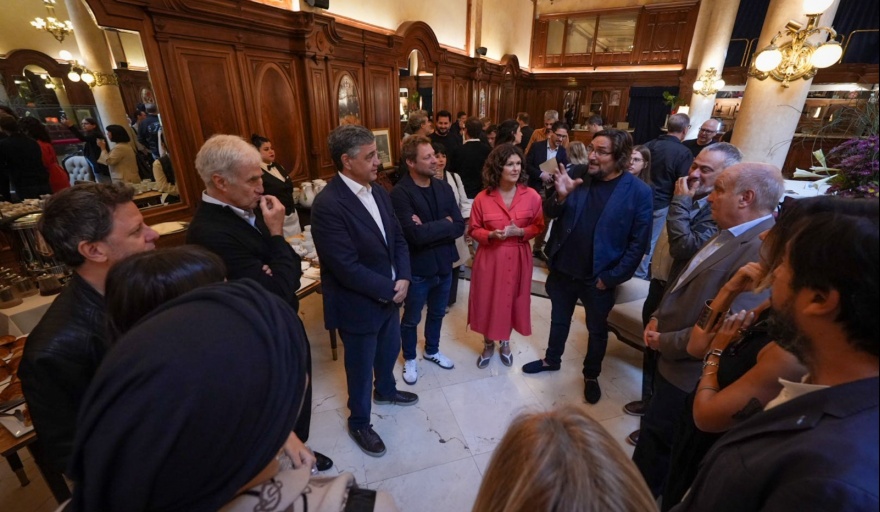 "Esta Ciudad impulsa cultura en sus más diversas formas. Y la industria audiovisual es parte de la identidad de esta ciudad, nos pone en el mundo, genera valor local, y le dan la posibilidad a muchos jóvenes, hombres y mujeres, para que encuentren su camino profesional", sostuvo Jorge Macri, en diálogo con empresarios y productores ganadores de las ediciones anteriores, en la confitería La Ideal. Lo acompañaron el jefe de Gabinete, Gabriel Sánchez Zinny, el ministro de Desarrollo Económico, Hernán Lombardi, y la ministra de Cultura, Gabriela Ricardes.