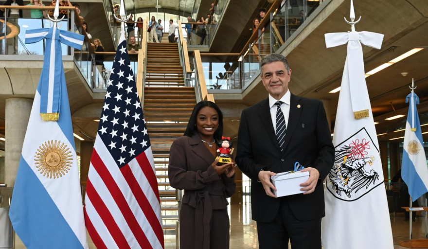 "Simone Biles no sólo es una de las deportistas olímpicas más destacadas de todos los tiempos, es un símbolo de superación, compromiso y perseverancia. Su historia inspira a millones de jóvenes y recibirla nos impulsa a seguir promoviendo los valores del esfuerzo y la inclusión a través del deporte", dijo el secretario de Deportes, Fabián "Chino" Turnes.