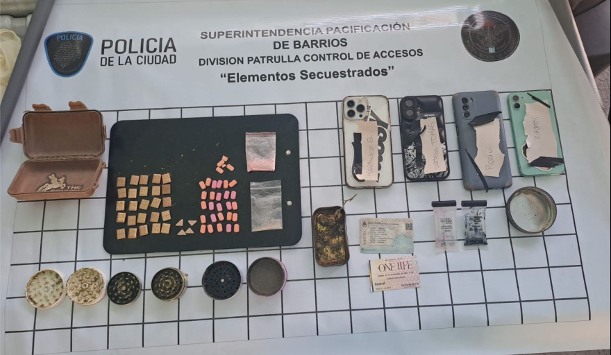 Debajo del asiento del conductor se hallaron tres gramos de tusi, dos gramos de cristales, tres gramos de picadura de marihuana y cincuenta y cinco pastillas de éxtasis.