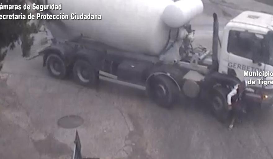 El sistema de videovigilancia del Centro de Operaciones Tigre (COT) registró un impactante siniestro vial que pudo terminar en tragedia: un camión arrolló a un vecino que circulaba por la localidad de El Talar.