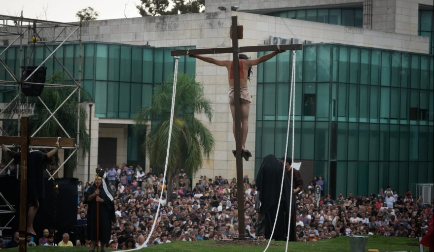La interpretación del Vía Crucis fue llevada adelante por la parroquia Nuestra Señora de Lima, acompañada por miembros de las distintas comunidades del Decanato de Malvinas Argentinas, recreando las 14 estaciones que representan el camino de Jesús hacia la cruz.